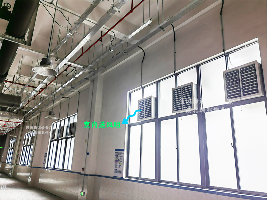 蒸發(fā)式冷風機:通過水分蒸發(fā)吸熱的原理,將車間內(nèi)的熱空氣經(jīng)過濕簾冷卻后送入車間,有效降低車間溫度。