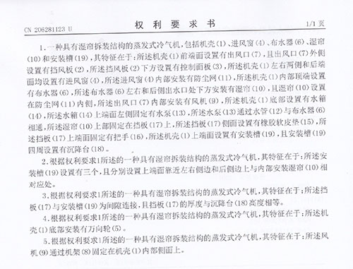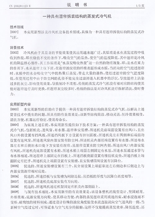 17年具有濕簾拆裝結(jié)構(gòu)的蒸發(fā)式冷氣機(jī)