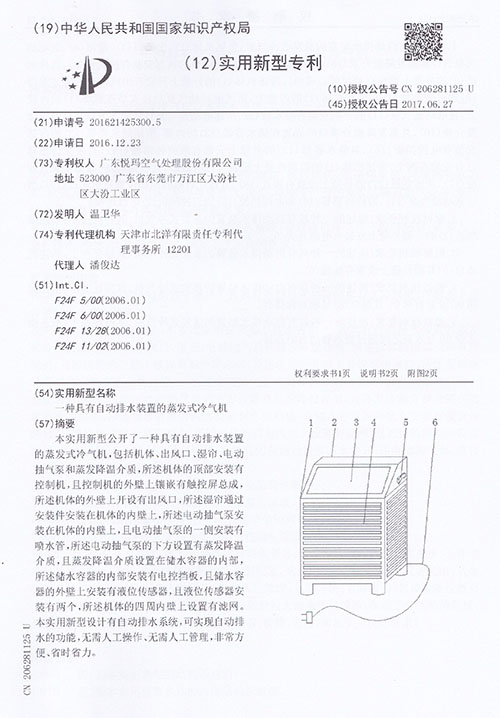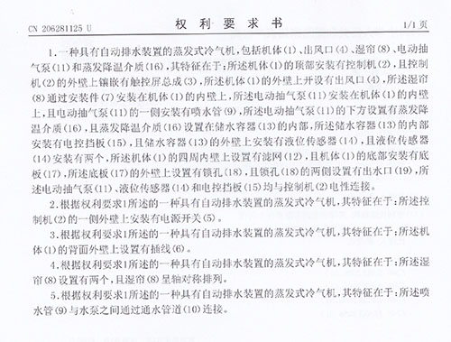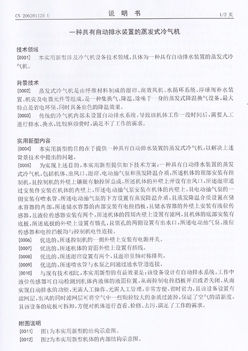 17年具有自動(dòng)排水裝置的蒸發(fā)式冷氣機(jī)