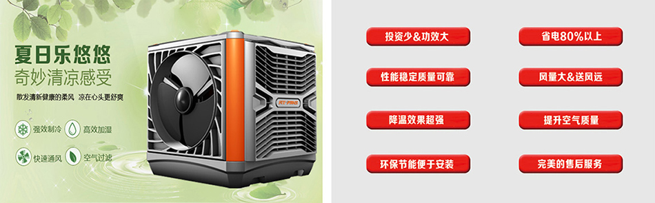 冷風(fēng)機(jī)除了可以讓企業(yè)車間、公共場所、商業(yè)娛樂場合帶來新鮮空氣和降低溫度之外,還有一個重要特點(diǎn)----節(jié)能、環(huán)保!它是一款全新無壓縮機(jī)、無冷媒、無銅管的環(huán)保產(chǎn)品,主要部件核心-----蒸發(fā)式濕簾(多層波紋纖維疊合物)及1.1KW的主電機(jī)/是傳統(tǒng)中央空調(diào)耗電1/8,能為各行業(yè)更實在的省電。