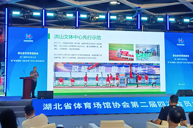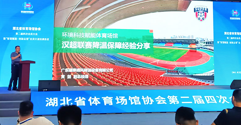 瑞泰風(fēng)移動(dòng)冷風(fēng)機(jī)的生產(chǎn)廠家,瑞泰風(fēng)受邀以分享嘉賓的身份,在現(xiàn)場(chǎng)面向全體參會(huì)嘉賓做了場(chǎng)館應(yīng)用創(chuàng)新主題案例的精彩分享,贏得了全場(chǎng)好評(píng),與行業(yè)同仁共話體育場(chǎng)館運(yùn)營(yíng)創(chuàng)新與發(fā)展。瑞泰風(fēng)市場(chǎng)營(yíng)銷部總經(jīng)理黃劍,重點(diǎn)分享了瑞泰風(fēng)在漢超聯(lián)賽中的降溫保障經(jīng)驗(yàn)。
