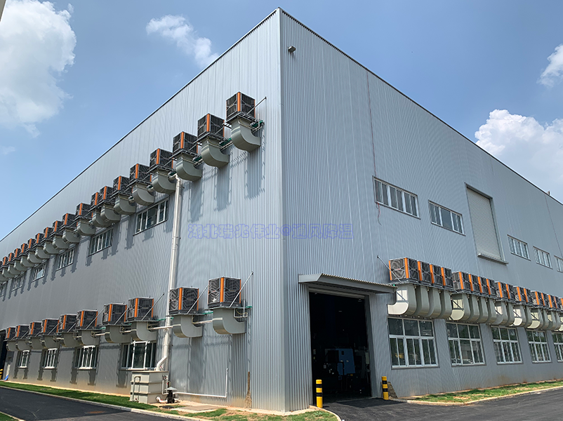 汽車制造車間通常屬于典型的高大型空間環(huán)境,一般都是高大型鋼結(jié)構(gòu)廠房。這類鋼架結(jié)構(gòu)廠房吸熱快,車間常年高溫,悶熱。車間地面高大型設(shè)備密集,往往空氣流通性差,工作人員相對(duì)不集中。