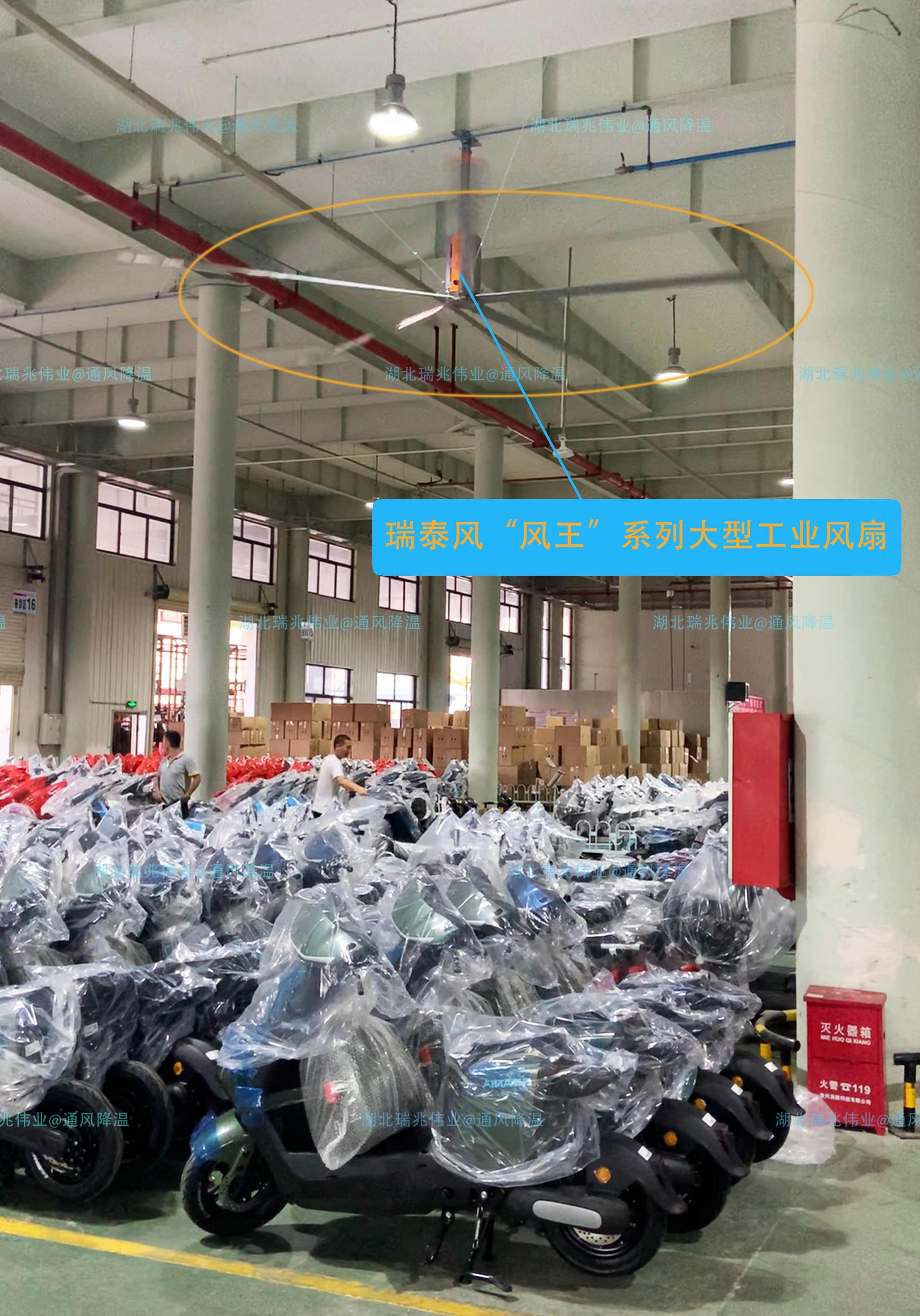 大型工業(yè)風(fēng)扇。這是一款針對高大型場所的工業(yè)大風(fēng)扇。瑞泰風(fēng)“風(fēng)王”系列大型工業(yè)風(fēng)扇單臺風(fēng)量為15500立方米,7.3米超大扇葉產(chǎn)生的立體循環(huán)風(fēng),雖然吊裝于8米~10余米的高空,但是吹拂到地面的風(fēng)速還是很強勁,能迅速將區(qū)域內(nèi)的高溫悶熱空氣吹散,有效增強室內(nèi)空氣流通,通風(fēng)降溫效果良好。