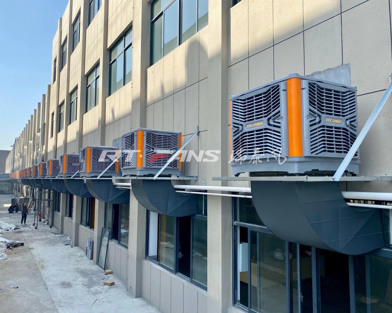 針對(duì)以上問題,我們推薦采用瑞泰風(fēng)節(jié)能環(huán)保空調(diào),也稱瑞泰風(fēng)冷風(fēng)機(jī)。它利用水蒸發(fā)吸熱來達(dá)到通風(fēng)降溫效果,可將室外新鮮空氣經(jīng)過降溫、過濾后源源不斷的送往室內(nèi),使室內(nèi)形成正壓,將室內(nèi)的粉塵、油漆味、悶熱空氣排出室外,整體降溫可以快速將家具制造廠溫度降低4℃-10℃。每100平方米標(biāo)準(zhǔn)配置1臺(tái)1.1kw功率瑞泰風(fēng)環(huán)??照{(diào),1分鐘將室內(nèi)空氣置換1次,且每小時(shí)耗電僅為1度。家具廠做了整體降溫以后混濁的空氣也得到了很好的改善,且室內(nèi)溫度在26℃左右,告別悶熱高溫,工人工作積極,效率也會(huì)更高。