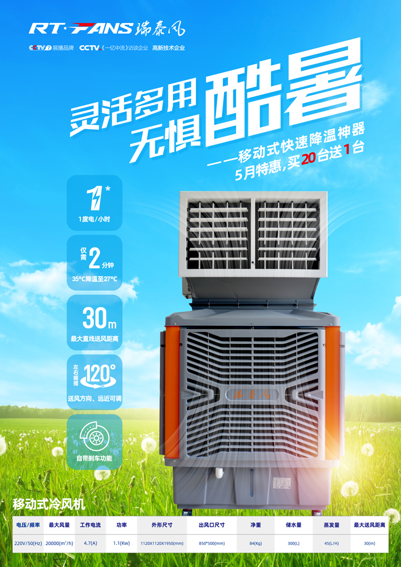 ,就派上用場了,公司秉著人文主義關(guān)懷,做一個有擔(dān)當?shù)钠髽I(yè),為社會貢獻一份力量,現(xiàn)將100臺瑞泰風(fēng)移動式蒸發(fā)冷氣機免費提供給疫苗接種場所。為什么說瑞泰風(fēng)移動式冷風(fēng)機適合像這種人員多面積大的開放式或半開放式的場所降溫呢,主要有以下幾個優(yōu)點。