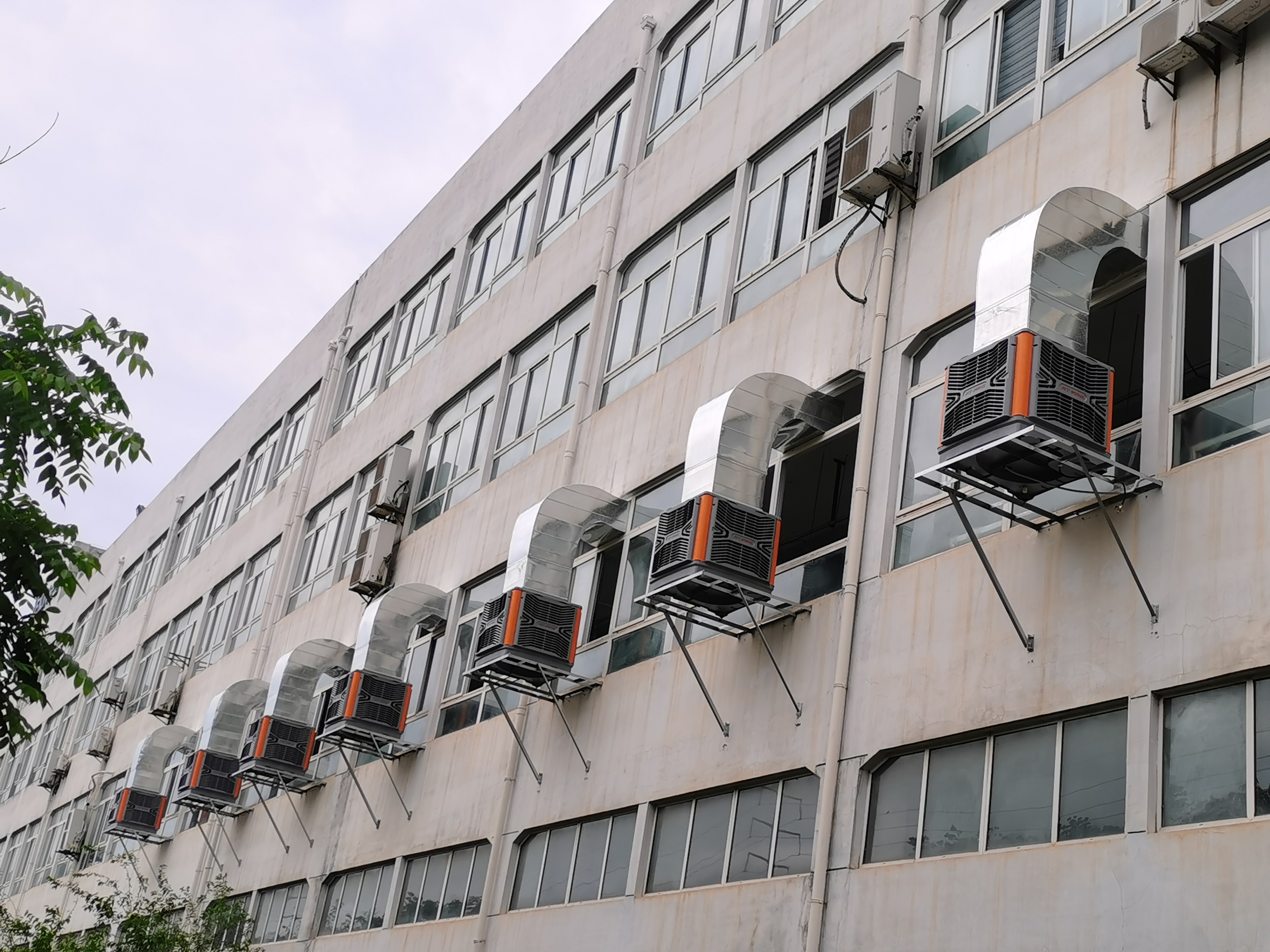 如果鐵皮廠房面積大廠房內(nèi)沒有行車,沒有障礙物,通常情況下會(huì)選擇工業(yè)大風(fēng)扇加環(huán)??照{(diào)(扇機(jī)組合)為廠房降溫,環(huán)??照{(diào)往廠房內(nèi)輸送冷鮮風(fēng),再由工業(yè)大風(fēng)扇將冷鮮風(fēng)均勻攪動(dòng)起來,可快速降溫鋼結(jié)構(gòu)廠房降溫難題,相反如果屋頂有障礙物有行車,可以采用環(huán)??照{(diào)為整個(gè)鋼結(jié)構(gòu)廠房降溫,每小時(shí)只需1度電。